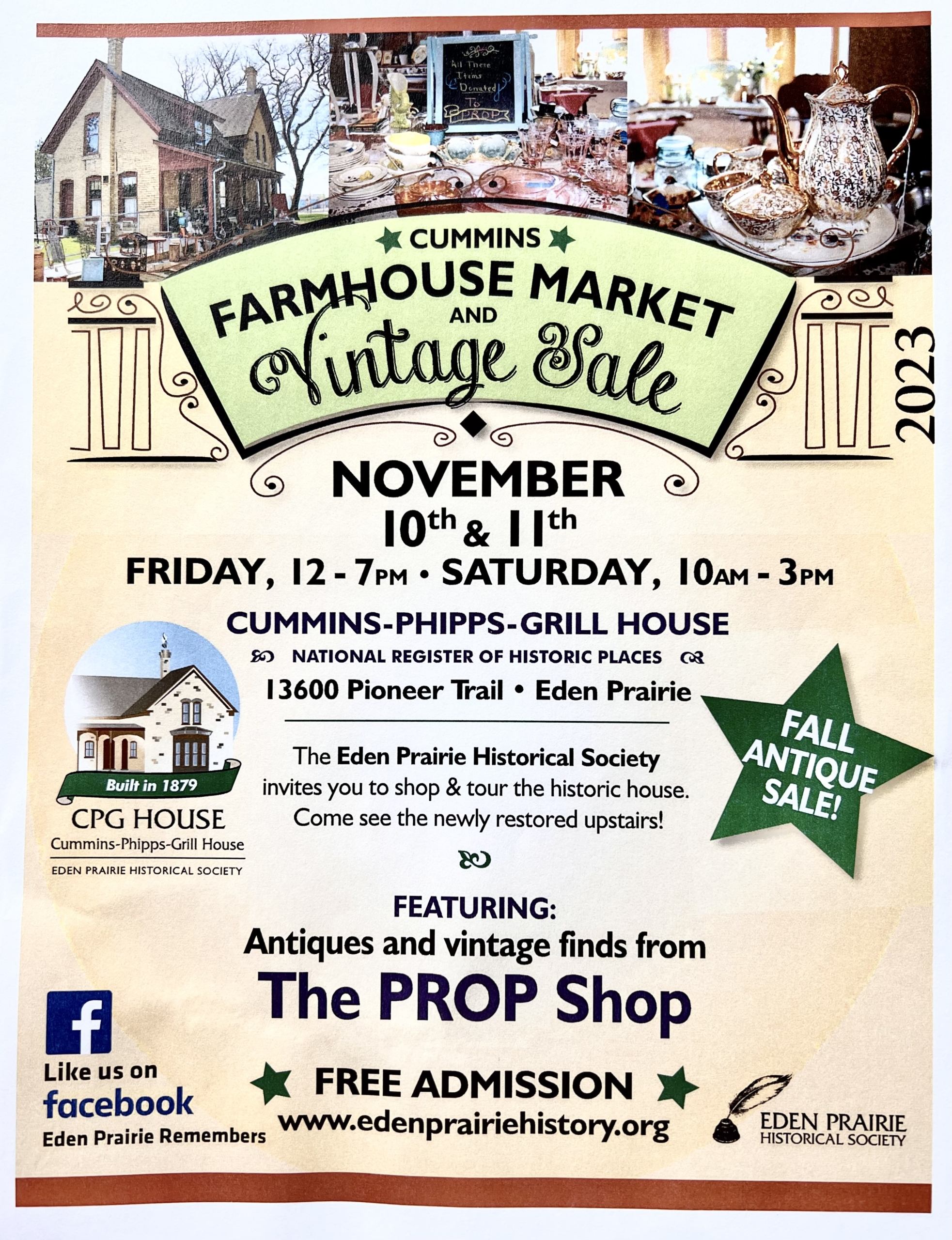 Cummins Historical Farmhouse is hosting another great vintage sale. There are incredible vintage treasures to purchase, and tours of this very special home will be given.