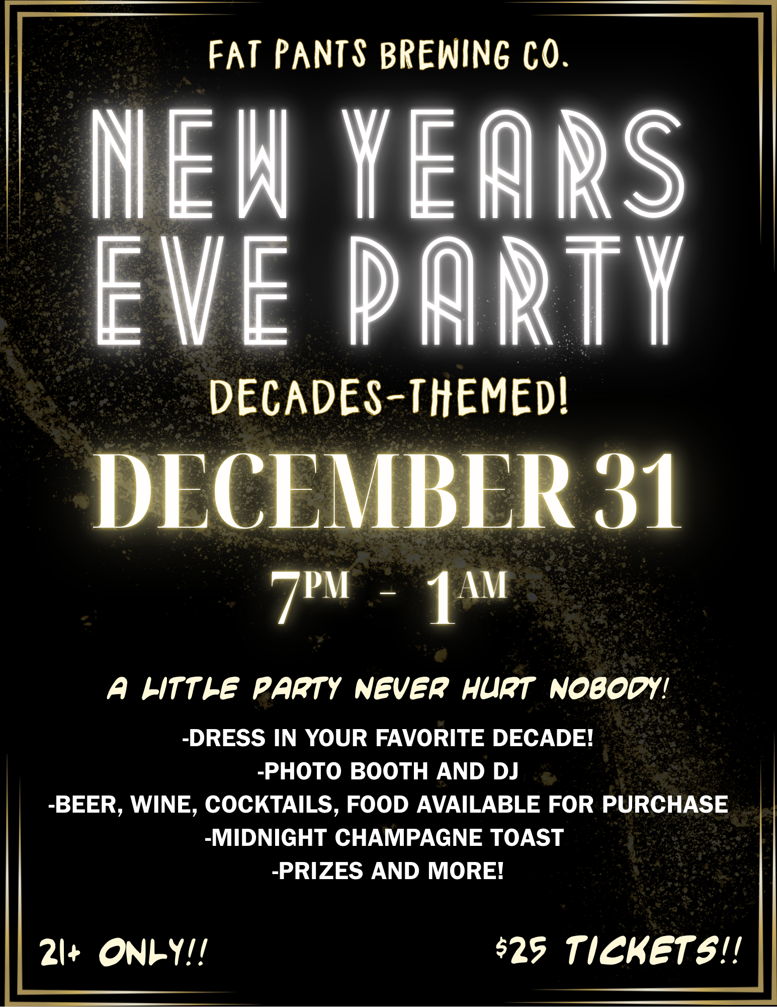 Ring in 2026 with us at Fat Pants Brewing! We’re throwing a festive, high-energy NYE bash filled with great music, great beer, and great vibes.